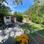 Der Innenraum ist mit einem Sofa sowie einem Flachbildfernseher mit Satellitenkanälen ausgestattet. Die Gezellig Ingerichte Chalet Op De Veluwe Incl Gebruik Van 2 Fietsen verfügt über ein Badezimmer mit einer getrennten Toilette und einer Dusche.